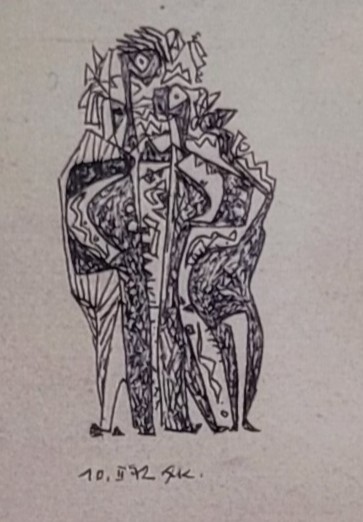 Kunstniku viimastel elukuudel sündis eriti suur hulk visandeid, milles segunes tema varasem abstraktne maalilaad ja spontaanne joonistusstiil. „Figuurigrup, Visand“ esindab just seda loomingulist laadi, olles näide tema joonistusliku isikupära kõrgest tasemest ja sissevaatest hilismoderni Eesti graafikasse.