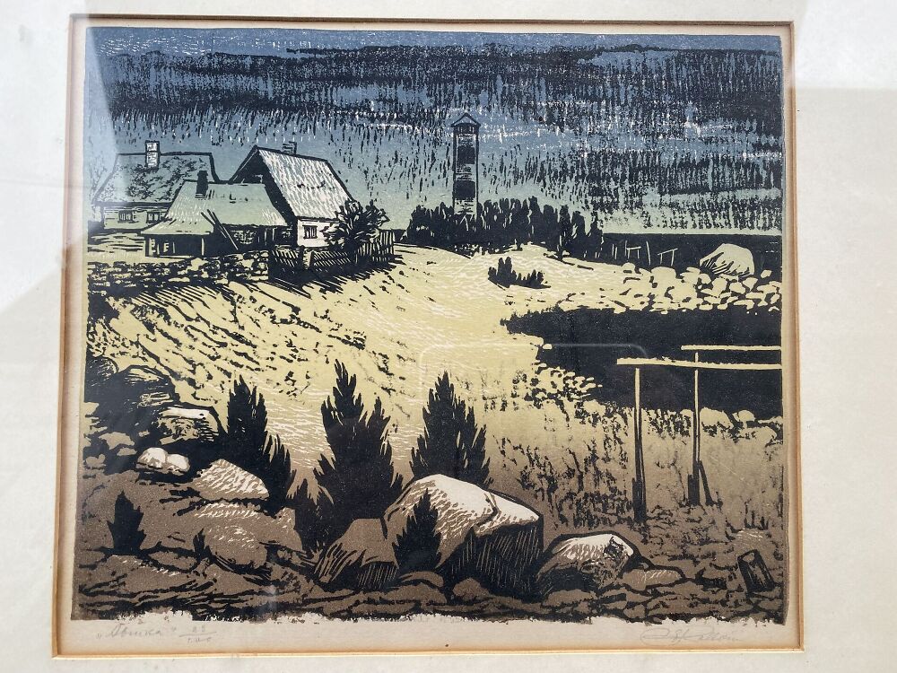 „Abruka“ on Ernst Kollomi puugravüüri suurepärane näidis, milles külma ja privaatse saare miljöö avaneb robustsejoonelises, ent poeetilises kompositsioonis. Maastik on täis teravaid kontraste ja varje: kivide täpne joonistus, põõsaste tumedad laigud, maja ja saare torn paistavad silma sügavust ning vaikust rõhutava rütmiga. Kollomi graafiline oskus avab Abruka ainukordse atmosfääri, kus loodus osutub võrdväärseks tegelaseks inimesega. Töö avatud taevas ja avarduv vaade kutsuvad vaatajat rändama ning mõtisklema, olles ühtlasi esteetiline monument Eesti saarte motiividele. See teos on kollektsionäärile, kes hindab Eesti graafika täpsust ja lüürilist jõudu.