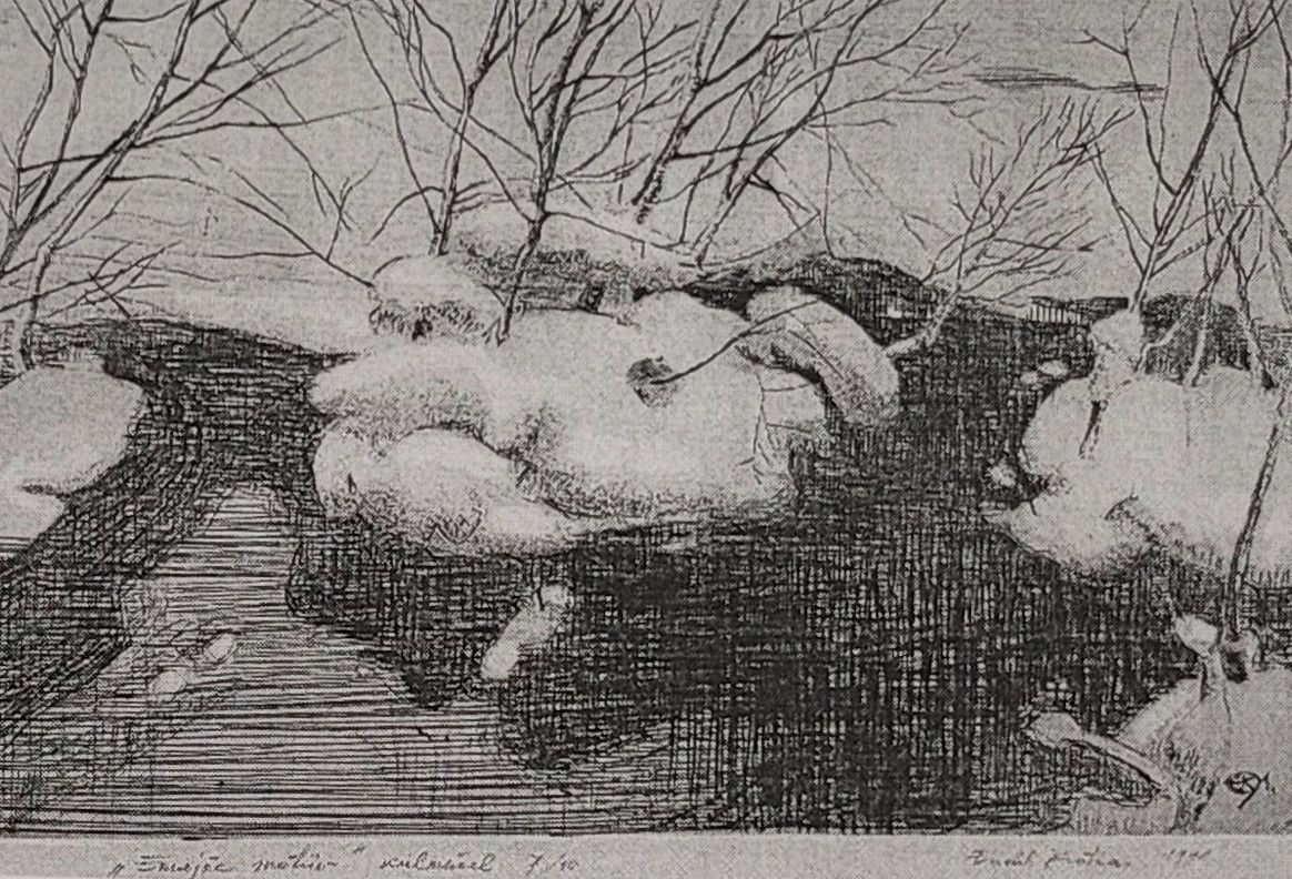 Endel Kotsari „Emajõe motiiv. Külmnõel 7/10“ avab vaatajale 1991. aasta graafilises külmnõelatehnikas Emajõe talvise vaate. Lumeraskuse all painduvad oksad, peene joonega kujutatud jõekallas ja vaikse vee taga aimatav varjude mäng loovad teoses haruldase tunde – harmoonia ja talvise vaikuse. Töös on tugevalt esindatud Kotsari graafiline tundlikkus ning tema oskus tuua esile looduse nüansse graafikas, mis kutsub mõtisklema põhjamaiste aastaaegade kargusest ja nende sisemisest soojusest.