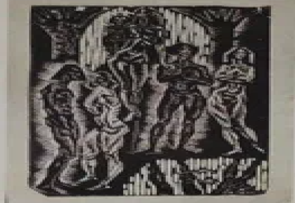 Tehnika ja materjalid: graafika, linoollõige, rohekashall paber