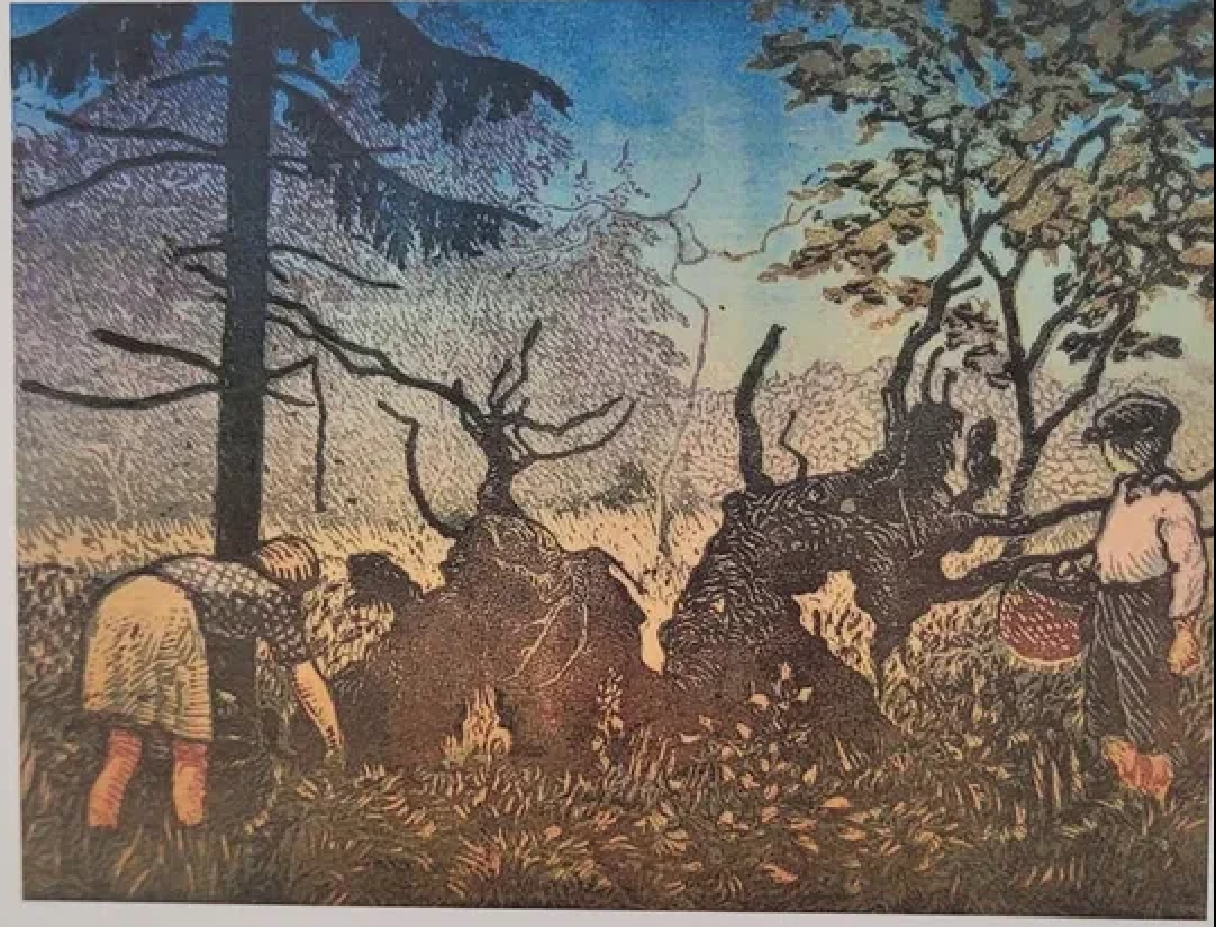 Tehnika ja materjalid: graafika, linoollõige, paber