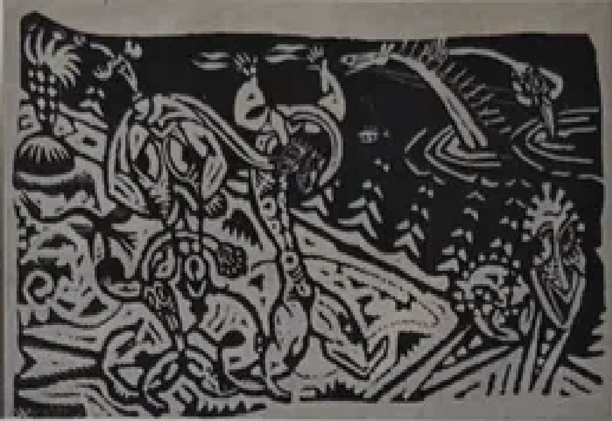 Tehnika ja materjalid: graafika, linoollõige, hall paber