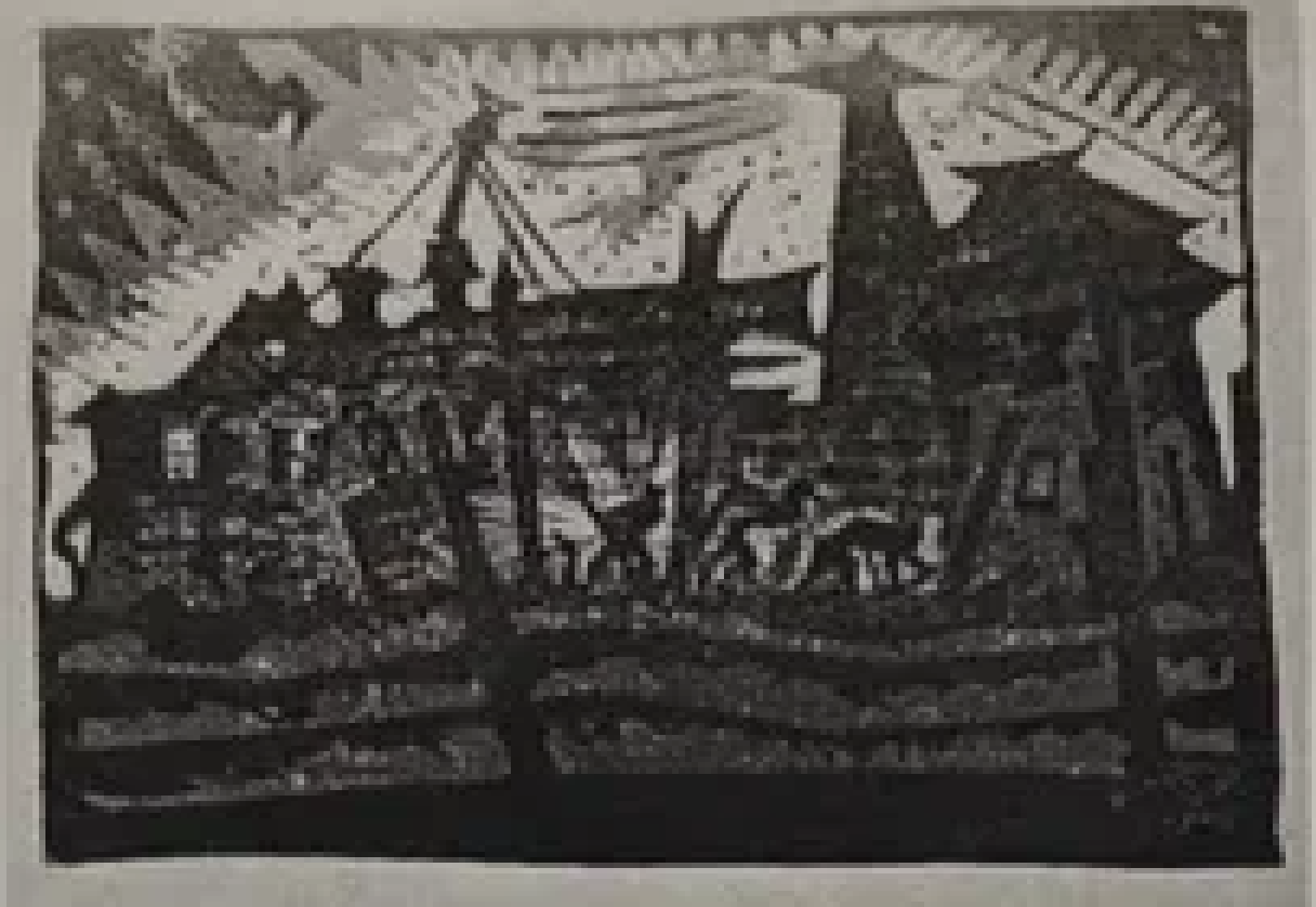 Tehnika ja materjalid: graafika, värviline linoollõige, paber (rohekas)