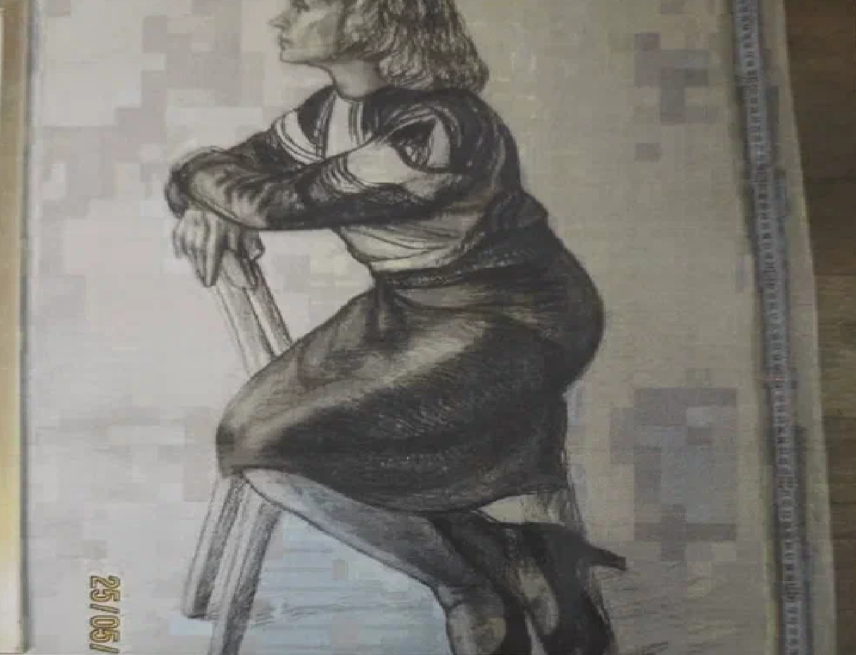 Tehnika ja materjalid: joonistus, süsi, paber