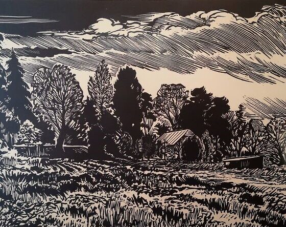 „Eesti maastik“ (1963) on Richard Kaljo käekirjale iseloomulikult tihe ja meisterlikult lahendatud linoollõike teos, milles külatagune loodus muutub graafilises mustvalges rütmis värviteadvust äratavaks vaateks. Pilvede dünaamika ja puudega raamitud vaikelu loovad Eesti maastikule tabava, vaoshoitud poeetika ja vaikse kohalolu, mis justkui joonistab vaataja endasse. Kaljo sügav tundlikkus materjali ja joone vastu laseb põhjamaisel suvel ja lopsakal looduspildil mängida ühtaegu nii kauguse kui lähedusega – see on pilk kodumaa vaiksele võlule.