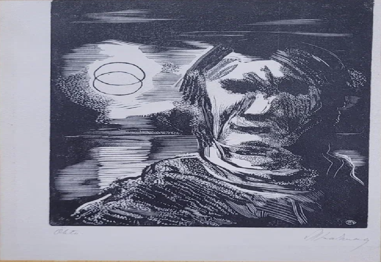 Tehnika ja materjalid: graafika, puugravüür, kriidipaber (kreem)
