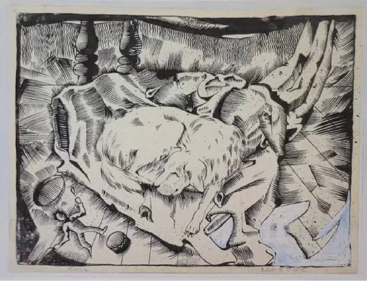 Tehnika ja materjalid: joonistus, tuss, guass, paber