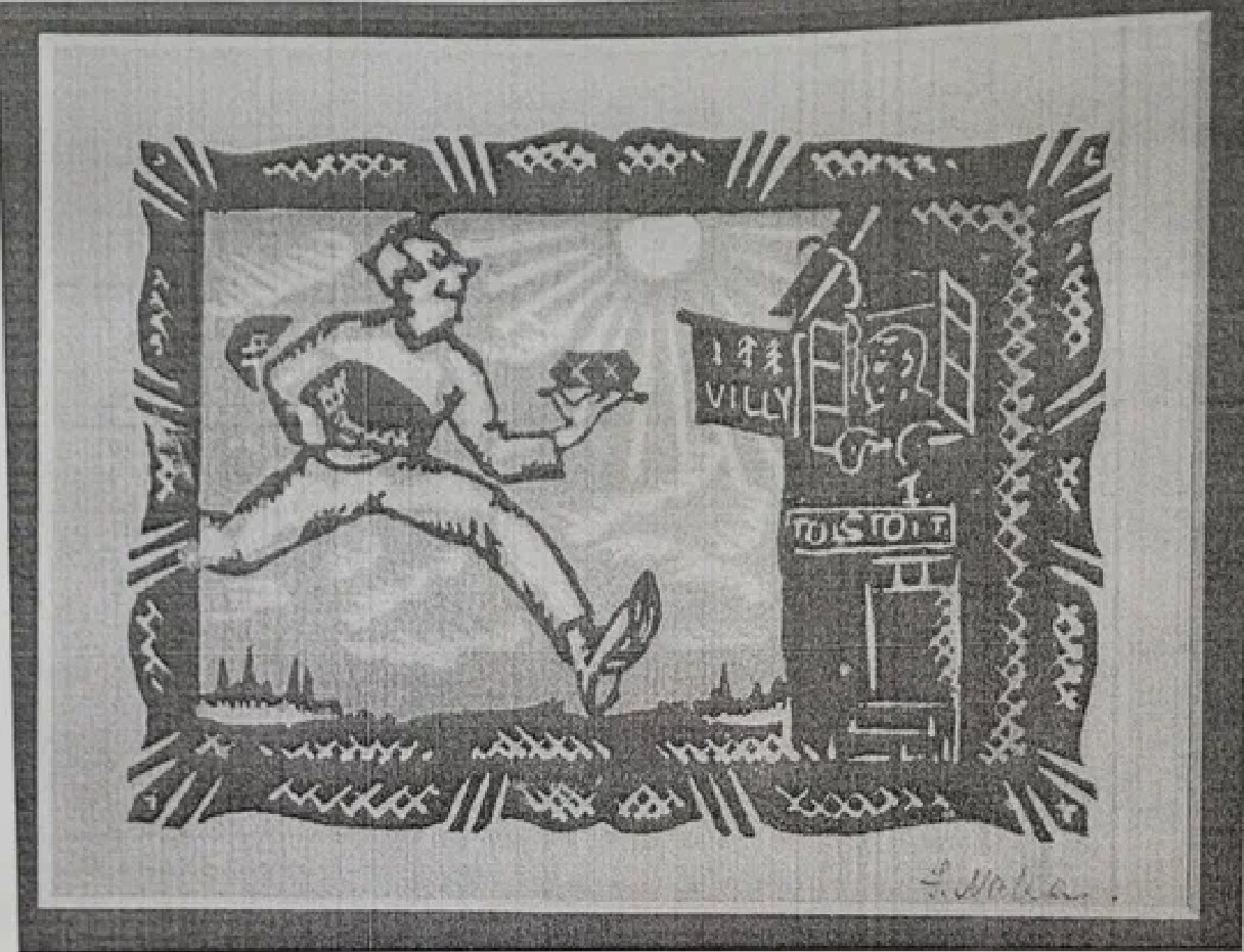 Tehnika ja materjalid: graafika, 2-värviline linoollõige, paber